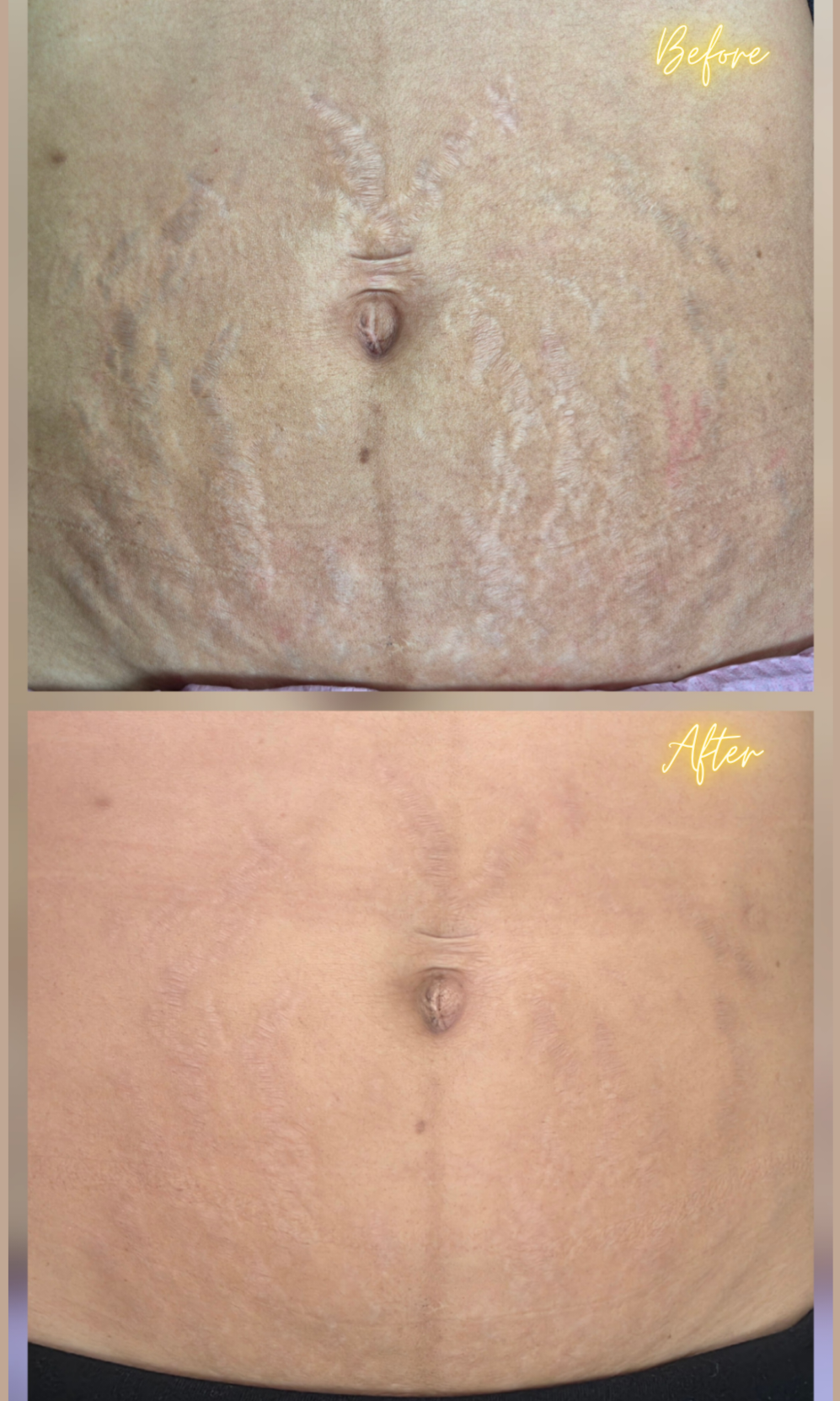 The total cost of the procedure varies greatly per technician and is dependent on the location and severity of the stretch marks or scar requiring treatment. Studio charges anywhere between $500-$2,000/ per area. We required an initial virtual consultation to establish treatment plan.